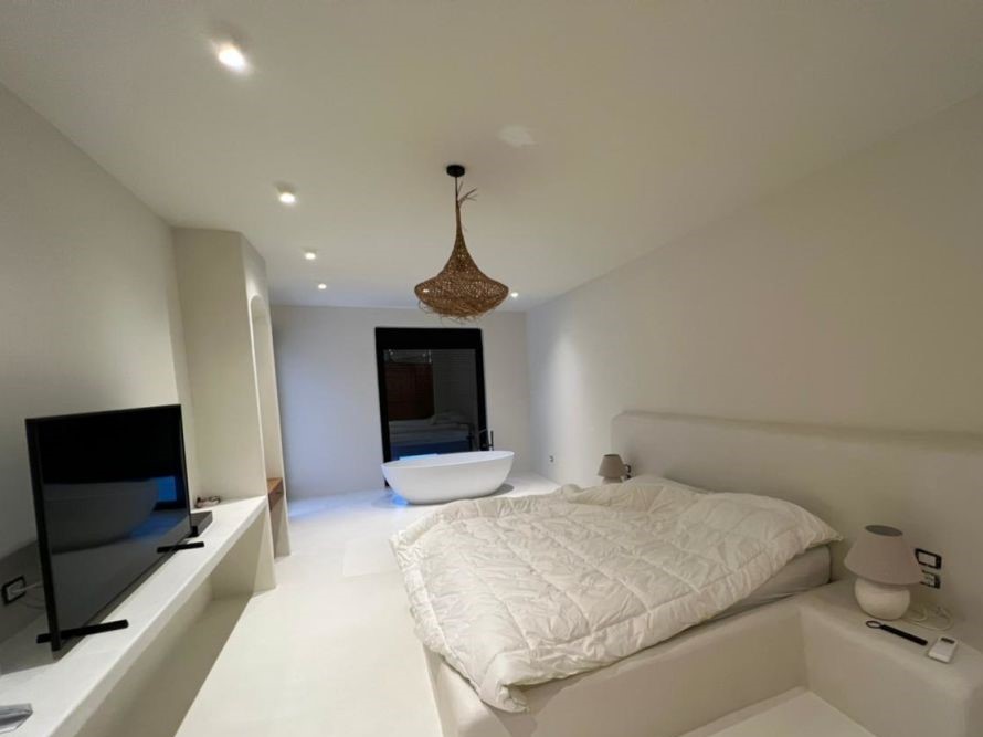 Dispozice apartmánu je obývací místnost s kuchyňským koutem, velká terasa, 3 ložnice, 2 koupelny, komora, samostatná garáž (+ 2 parkovací místa před domem). Apartmán je moderně a velmi vkusně zařízen. Celková rozloha: 270/153m2.